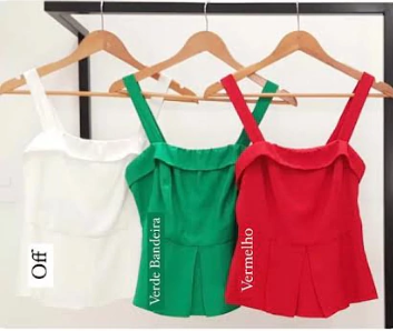 Blusa no tecido alfaiataria marrant, decote com pala e alças largas, barra peplum com pregas e ziper invisível nas costas. Forrada.