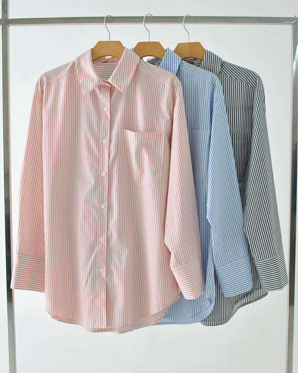 Transforme seu guarda-roupa com a Camisa Listrada Alongada e Mangas Longas! Esta peça única é ideal para quem busca estilo e conforto em um só produto. Com um botão de destaque em flor de metal dourado e punhos largos, ela traz um toque de sofisticação e charme.